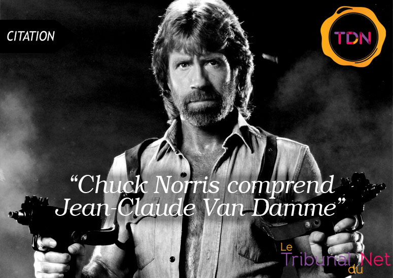Moi, Adam et Eve, j'y crois plus tu vois, parce que je suis pas un idiot la pomme ça peut pas être mauvais, c'est plein de pectineJeanClaude Van Damme casse des noix entre ses fesses Chuck Norris casse JeanClaude Van Damme de la même façon